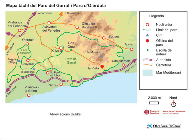 Es tracta d'una versió integrada en tinta, relleu i braille de plànols esquemàtics dels parcs de la Xarxa de Parcs Naturals, útil tant a persones vidents com amb dificultats de visió. S'han produït en una làmina tàctil en vinil en color, que inclou macrocaràcters, relleu i braille que es munta sobre un suport rígid de gran durabilitat. La mida és de 45 x30 cm.