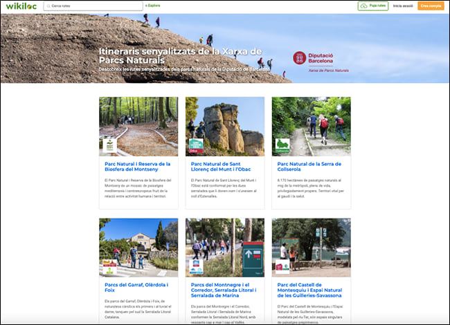 Els itineraris senyalitzats de la Xarxa de Parcs Naturals compten amb un espai propi a Wikiloc. Una pàgina agrupa els sis comptes creats per oferir als excursionistes les rutes senyalitzades pels dotze espais naturals que gestiona la Diputació de Barcelona. En total, ja hi ha unes 150 rutes disponibles per als usuaris, que hi poden accedir de forma gratuïta, i se n’aniran incorporant més.