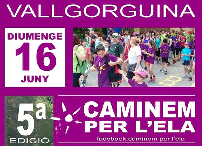 Ua animem a participar de la 5a edició de la Caminada per l'ELA. Hi haurà dos recorreguts, el llarg, de 15 a 17km i el curt, de 7 a 10 km. Tot el que es reculli anirà íntegrament detinat a la Fundació Miquel Valls.